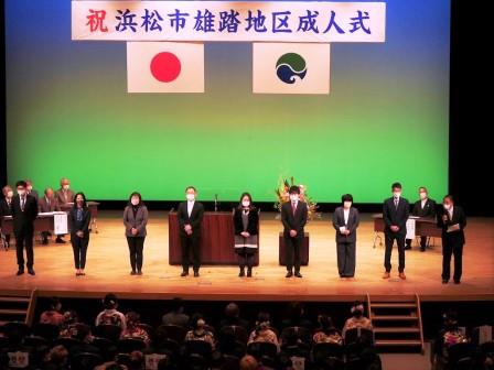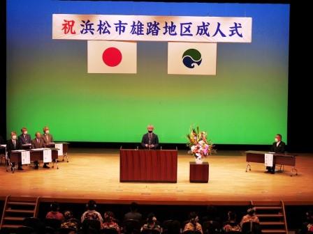 1月9日(日曜日)、雄踏文化センターで令和4年雄踏地区成人式を開催しました。新成人140人が参加し、来賓や保護者が輝かしい門出をお祝いしました。会場では旧友や恩師との再会を喜ぶ新成人の笑顔が見られました。