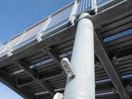 太陽光発電LED照明(人感センサー付き)は出入口、階段、ステージなど計8カ所にあります。