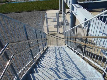 無理に2列になると危険ですので、ゆっくり手摺をもって階段を利用してください。