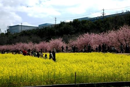 河津桜と菜の花のコントラストがきれいです。