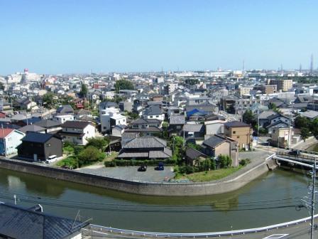 写真は、入野中学校から南東方面を望んだものです(手前は、新川です)。