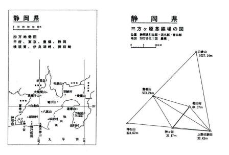 つまり、神原町にある一等三角点は三方原基線南端点「神ケ谷」の座標となります。