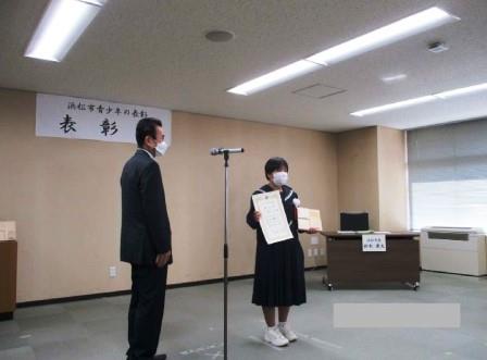 令和4年12月7日、8日に、「青少年の表彰」の表彰式が行われました。この事業は、地域の文化活動や奉仕活動などに積極的に取り組んでいる青少年や団体の活動を奨励し賞賛するため、浜松市の青少年育成センターが実施しているものです。西区では神久呂地区・中島心花さん、入野地区・スマイルボランティアの皆さん、庄内地区・庄内学園の皆さんが表彰されました。