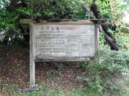 深萩町から細江町に通ずる県道の中ごろを東北へ少し入ると、根本山周辺に存在した古墳の中で最大規模の円墳「火穴古墳」があります。この古墳は、この辺りで約1400年前に最も勢力があった人の墓といわれており、地元の人達によって大切に保存されています。