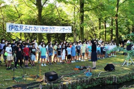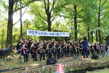今年で第26回となる伊佐見ふれあい水車小屋コンサートを10月2日(日曜日)に伊左地緑地内の「森の水車公園」で3年ぶりに開催しました。当日は、晴天に恵まれ大勢の地域の方が来場され、参加団体の素晴らしい演奏や合唱に感動していました。参加団体は、地域の音楽団体、伊佐見小学校4年生、湖東中学校吹奏楽部、オイスカ浜松国際高校吹奏楽部及び浜松湖東高校吹奏楽部の皆さんです。