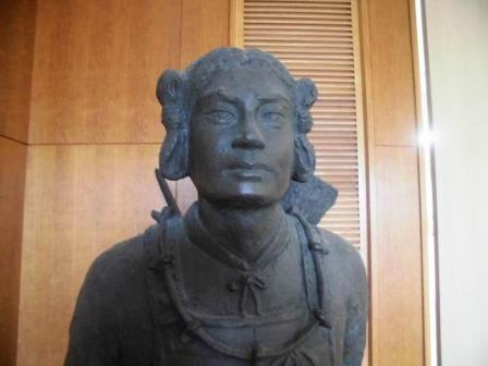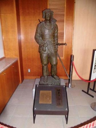 雄踏図書館入口に「日本武命」の銅像が設置されています。図書館の北側にある金山神社の社伝には、「日本武命東征のおり、当町中央、金山の丘に登り、伊都(いず)の雄詰(おたけび)を踏み建(たけ)び給いしより、この里を雄踏と号す」とあり、町名の由来が記されています。