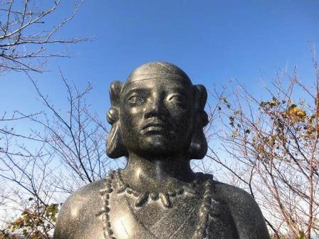 雄踏町山崎にある極楽寺の西側高台に大きな釣鐘があります。その隣に「ヤマトタケル」石像が設置されています。和尚様のお話によると、雄踏という地名の由来を伝承するため(忘れないため)に建立したとのことでした。