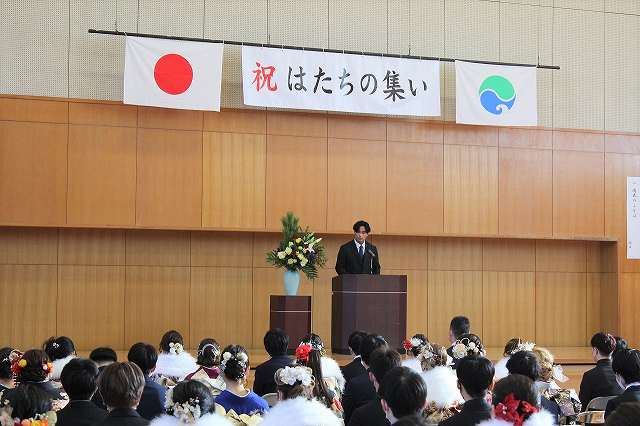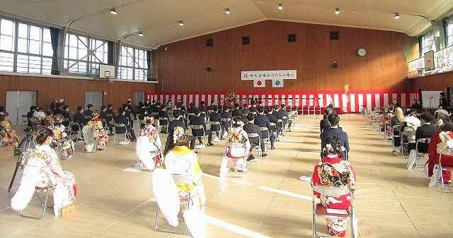 令和5年1月8日(日曜日)、晴天に恵まれ、伊佐見協働センター体育館にて伊佐見・和地地区はたちの集いが盛大に開催されました。