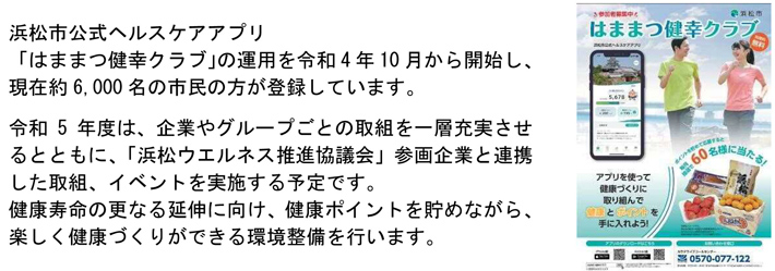 ※「浜松ウエルネス・ラボ」は企業を中心に市民の疾病・介護予防や健康づくりに寄与する社会実証事業を実施する。