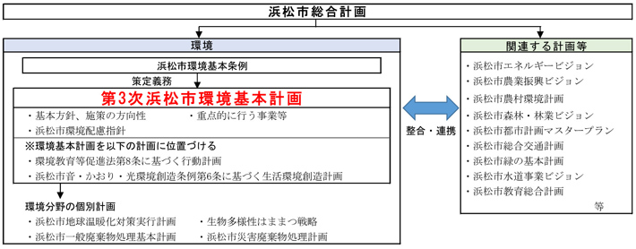 浜松市における環境の保全及び創造のため、計画期間を令和7年度から令和16年度とする「第3次浜松市環境基本計画」を策定する。