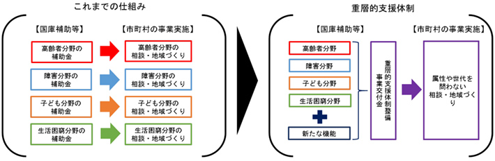 介護、障がい、子ども・子育て、生活困窮の各分野で行われている地域づくりに向けた支援の取組を一体的に実施