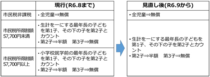 認可保育施設の保育料について、年齢制限を撤廃して、全ての世帯を対象に、生計を一にするきょうだいのうち、第2子の保育料を半額、第3子以降の保育料を無償とする。