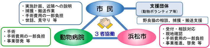野良猫の不妊手術を推進することで、地域での野良猫の増加に伴う生活環境の悪化防止を図る。
