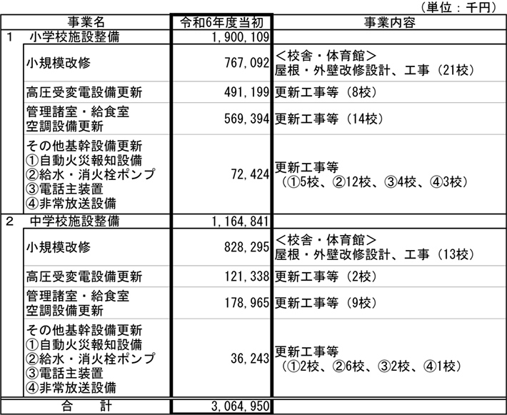 ※小学校建設事業の一部、小学校施設整備事業の一部、中学校建設事業の一部、中学校施設整備事業の一部の合計