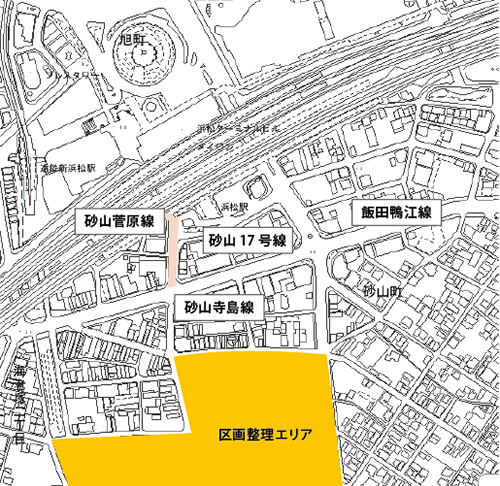 JR浜松駅南口駅前広場周辺の自動車交通混雑の緩和を図り、安全で快適な道路空間を確保する。