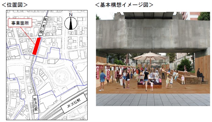 新川モールの施設整備を実施し、JR浜松駅前から繁華街にかけての中心市街地の回遊性向上を図る。