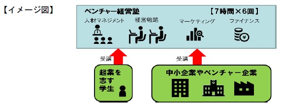ベンチャー企業の成長につながる経営戦略、マーケティング、ファイナンス等のスキル・ノウハウを学ぶ場を提供し、ベンチャー企業の経営基盤の安定を図ることで地域産業の活性化につなげる。