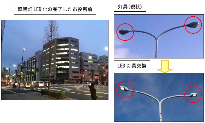 道路照明灯のLED化により、維持管理コストの縮減並びにCO2排出ガス削減等の環境負荷の低減を図るとともに、経年劣化する道路照明灯の計画的な修繕・更新を実施する。