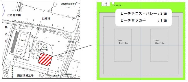 1,280平方メートル(ビーチテニス・バレー2面、ビーチサッカー1面利用)